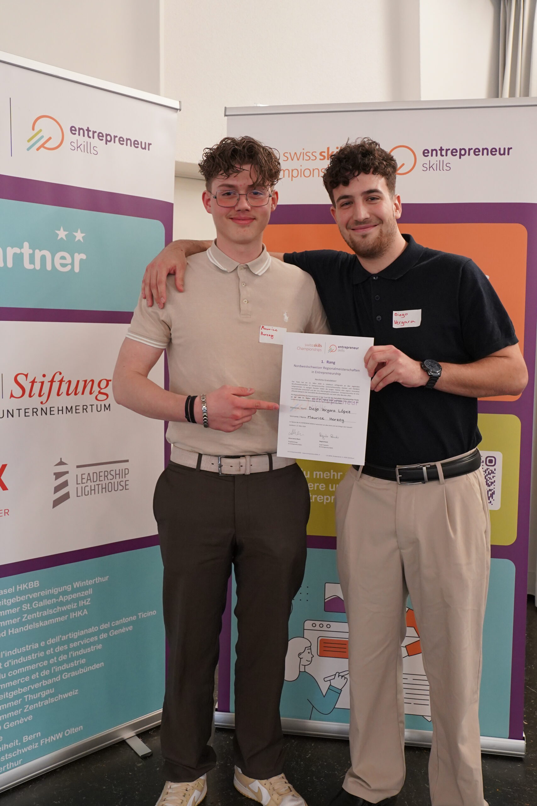 Die beiden jungen Automatiker EFZ Diego Vergara López aus Rupperswil (AG) und Maurice Herzog aus Hornussen (AG) haben sich gegen acht andere Zweier-Teams durchgesetzt. Mit ihrer Idee «Madula» präsentierten sie eine Lösung, bei der Abfallholz so verarbeitet wird, dass es in einen 3D Drucker gegeben werden kann und Designer Geschirr damit hergestellt werden kann. Das Team stellte sein technisches Know-How sowie die unternehmerische Anwendung im Bereich Holzdruck eindrücklich unter Beweis. Sie werden die Region Nordwestschweiz und den Kanton Aargau am nationalen Wettbewerb «SwissSkills Championships» an der OBA St. Gallen vom 27.-30. August 2026 in St. Gallen vertreten und werden im Vorfeld, gemeinsam mit den anderen Finalistinnen und Finalisten aus der ganzen Schweiz, auf den Wettkampf vorbereitet.
