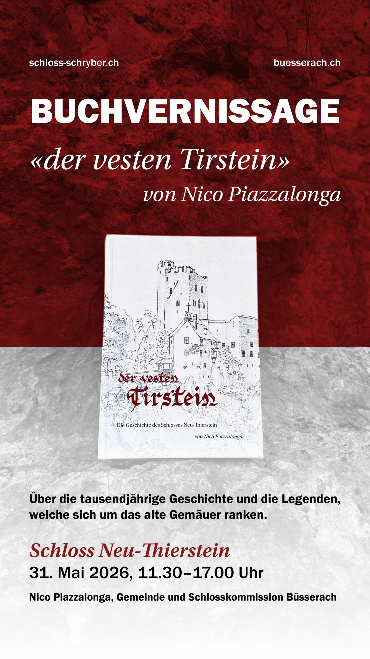 Auf 439 Seiten, mit 279 Abbildungen, einem Faltblatt mit Karte/Stammbaum und einem digital abrufbaren 3D-Modell wird die ca. 1000jährige Geschichte des Wahrzeichens von Büsserach und dem Schwarzbubenland erzählt. Zusammen mit der Gemeinde und Schlosskommission Büsserach veranstalten wir am Sonntag 31. Mai von 11.30 – 17 Uhr eine Vernissage auf dem Schloss.