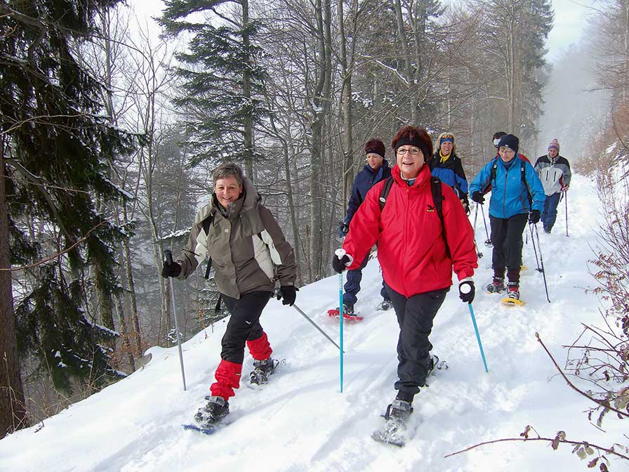 Zweimal wöchentlich greift Regula Esposito zu den Nordic Walking-Stöcken, sammelt eine begeisterte Schar von Walkerinnen und Walkern um sich und los gehts. «Jeweils am Dienstagabend und am Donnerstagmorgen sind wir 1V Stunden irgendwo im Laufental, Dorneck oder Thierstein unterwegs. Die Abwechslung der Routen ist mir wichtig, um die herrliche Vielfalt unserer Region voll auszukosten», sagt die Geschäftsleiterin von nordicwalking-laufental.ch. Liegt genügend Schnee – rund 15 Zentimeter sollten es schon sein – werden kurzfristig Schneeschuhe organi-